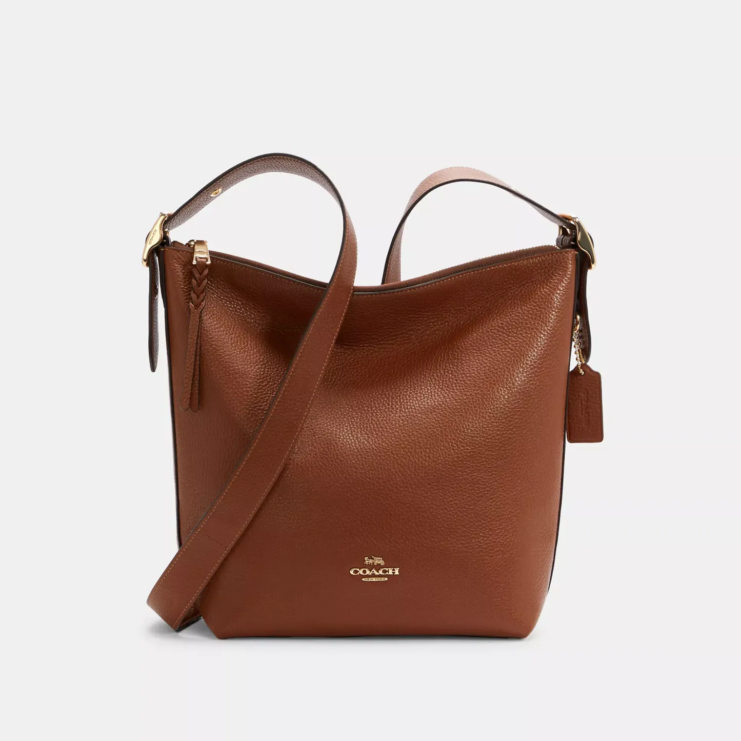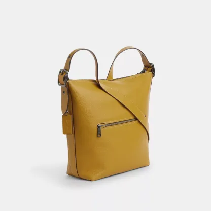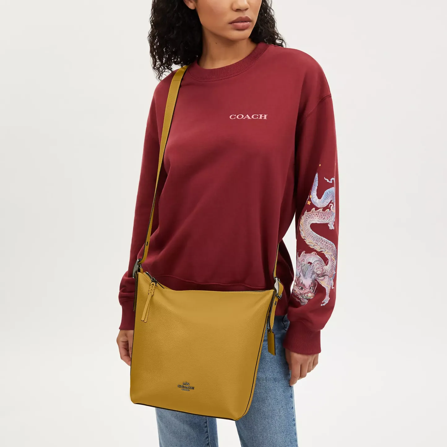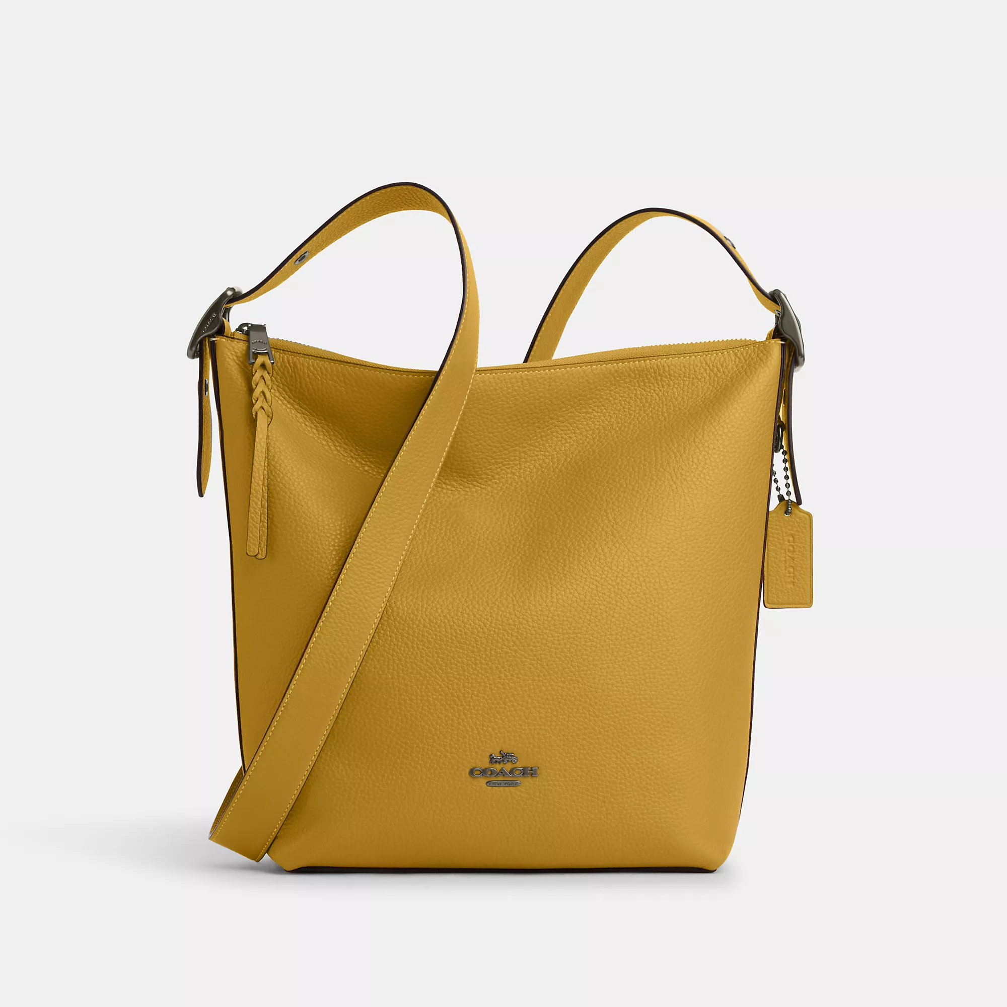 Refined pebble leather Inside zip cell phone and multifunction pockets Zip-top closure fabric lining Outside zip pocket Adjustable strap with 21 drop for shoulder or crossbody wear 9 (L) x 11 1/4 (H) x 4 1/2 (W) Style No. C2818 | Outlet Val Duffle - Yellow