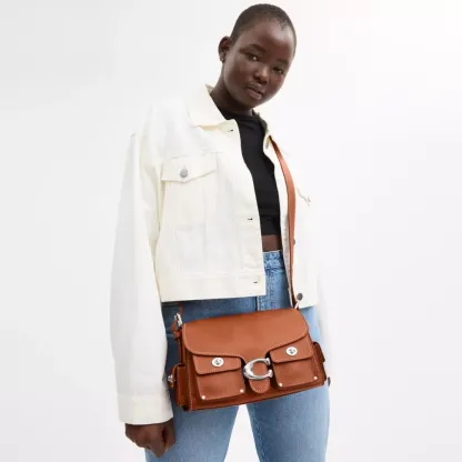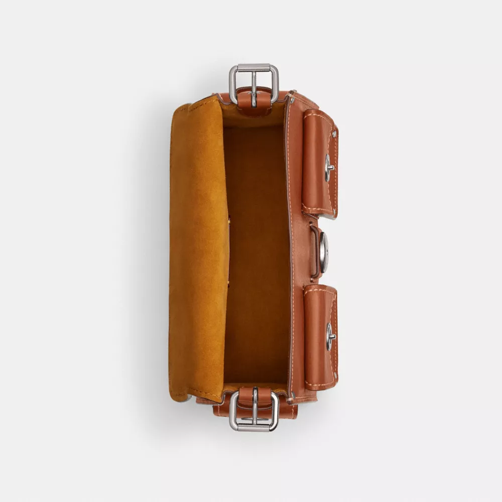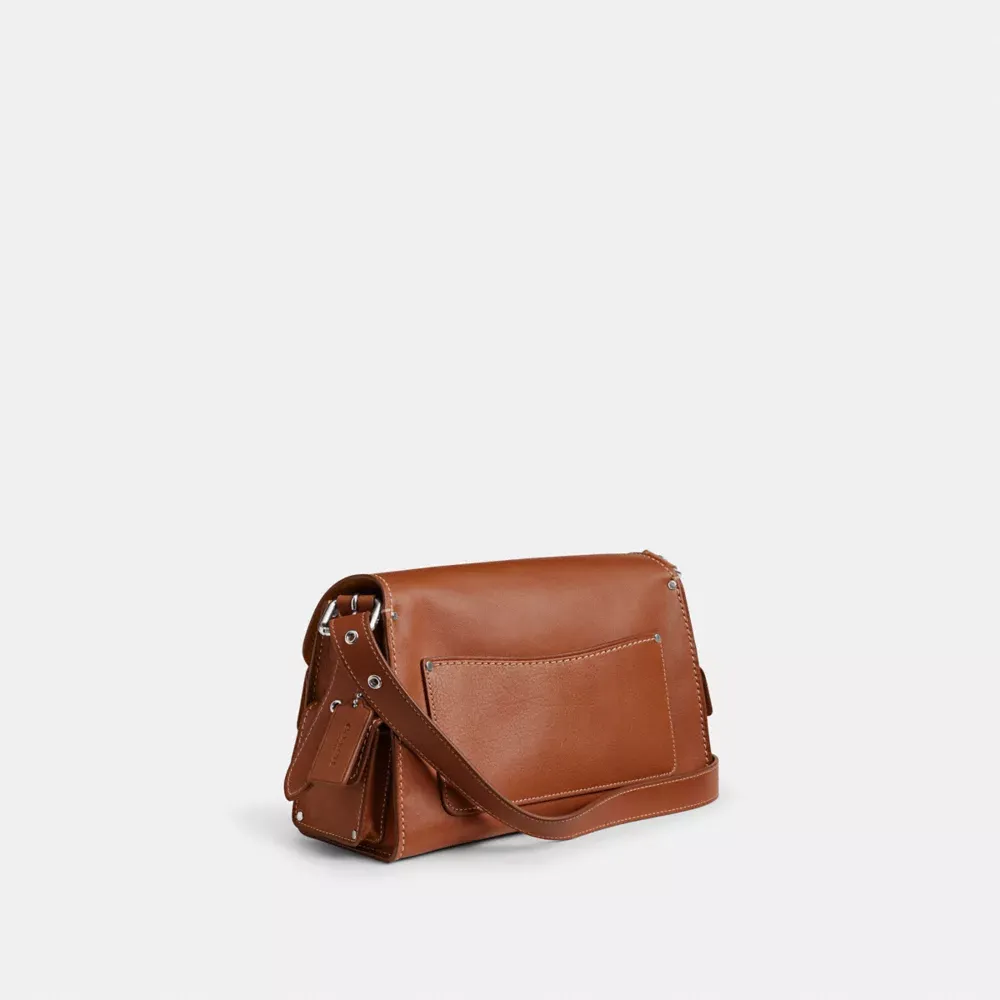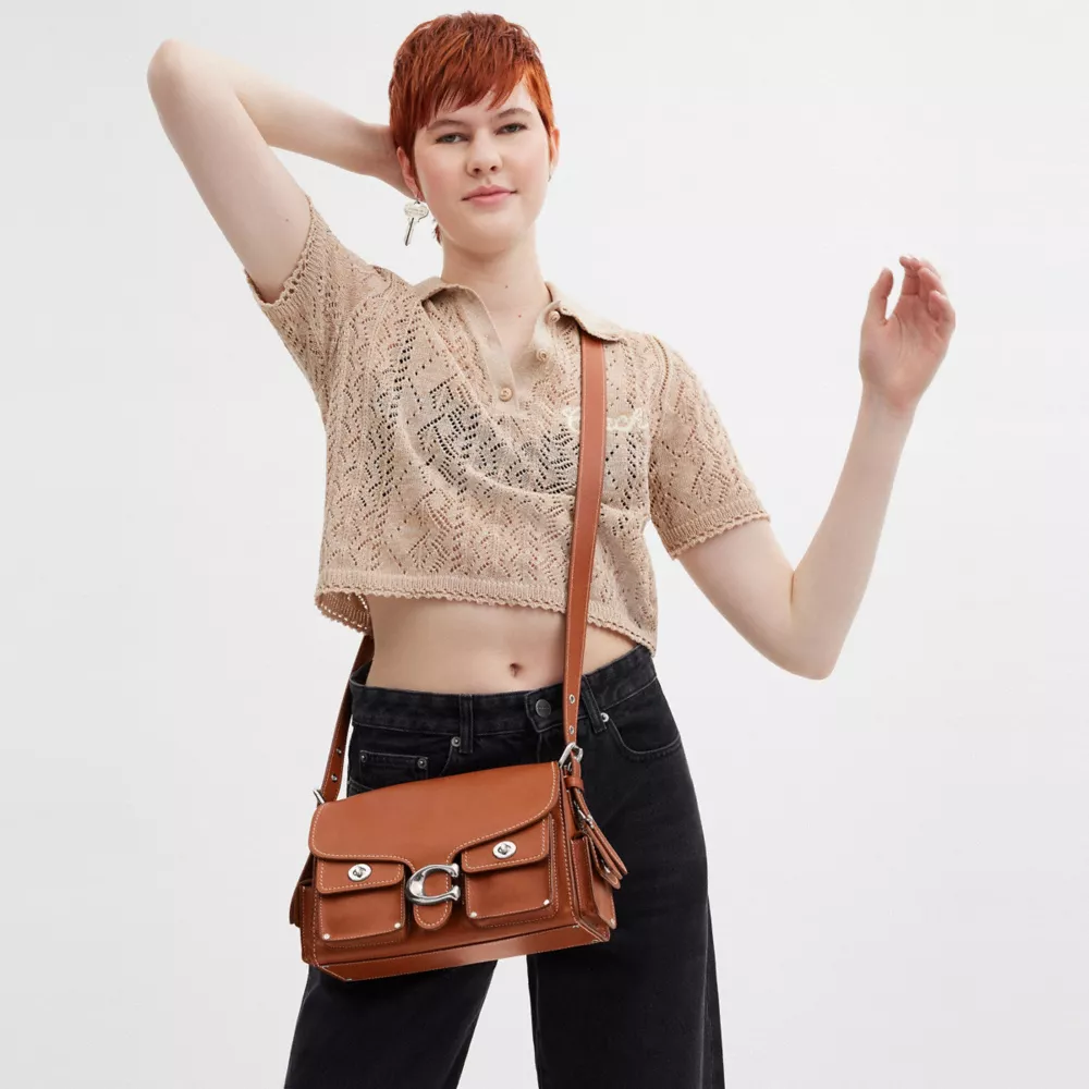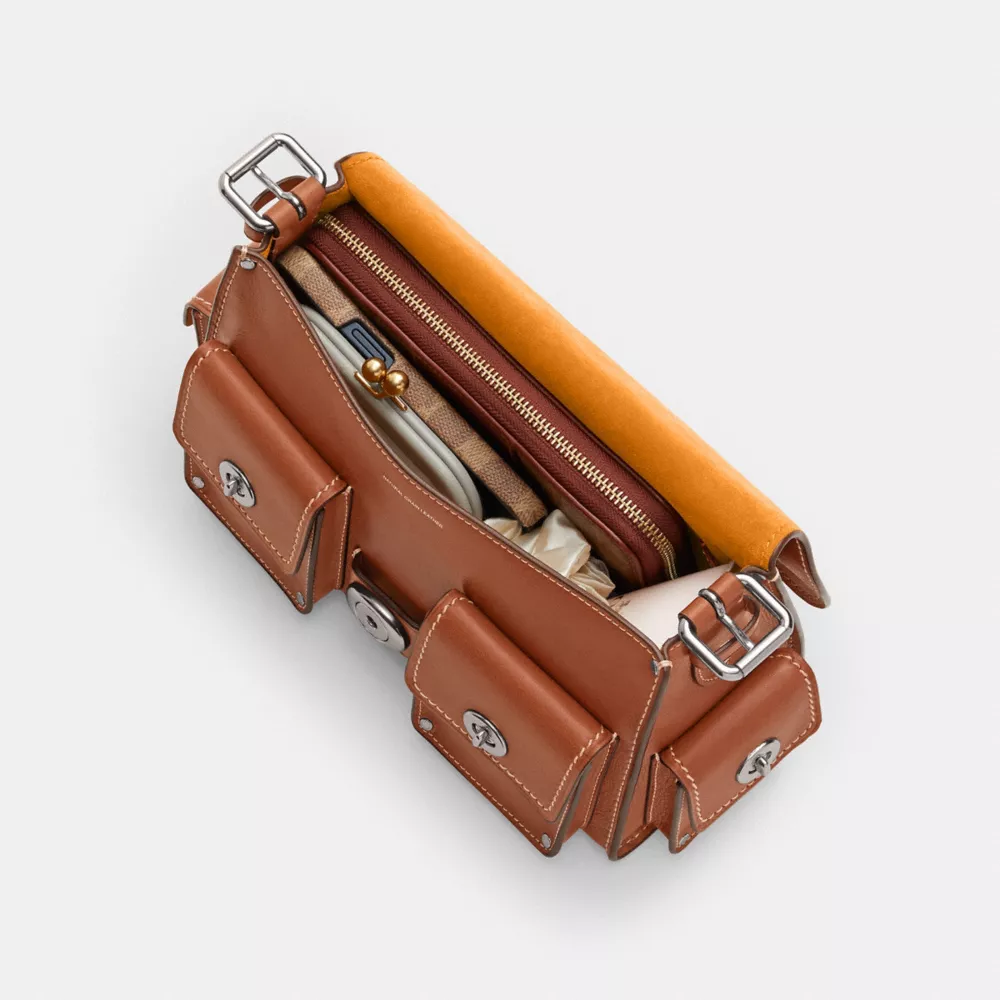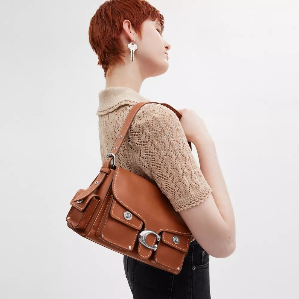 The Soft Tabby reimagines our structured take on an archival 1970s Cothtach design with a relaxed feel. Finished with cargo pockets detailed with our iconic turnlock closures, polished stud accents and our Signature hardware, this natural grain leather shoulder bag features pockets inside and out to organize small accessories and two straps to carry by hand, style as a short shoulder bag or wear crossbody.