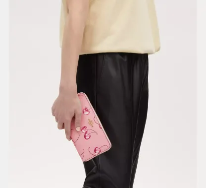 Long Zip Around Wallet With Cherry Print